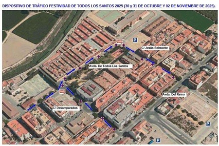 Se establece que el itinerario para el acceso al cementerio transcurre por C/Desamparados, Avda. De Todos los Santos y C/Jesús Belmonte. La Avda. de Todos los Santos (solo el tramo frente al cementerio ) tendrá un único sentido de circulación, en dirección hacia el IES Gil de Junterón.